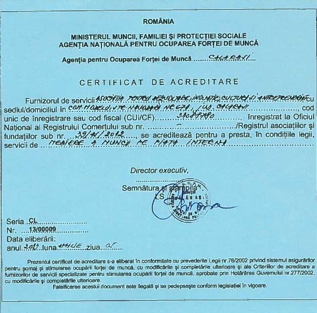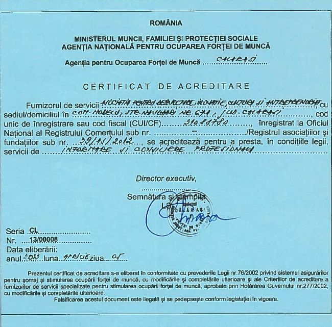 - Facilitarea accesului pe piaţa muncii: suport pentru obţinerea unui loc de muncă şi menţinerea pe piaţa muncii, facilitarea accesului la servicii de formare şi reconversie profesională, orientare vocaţională;